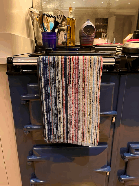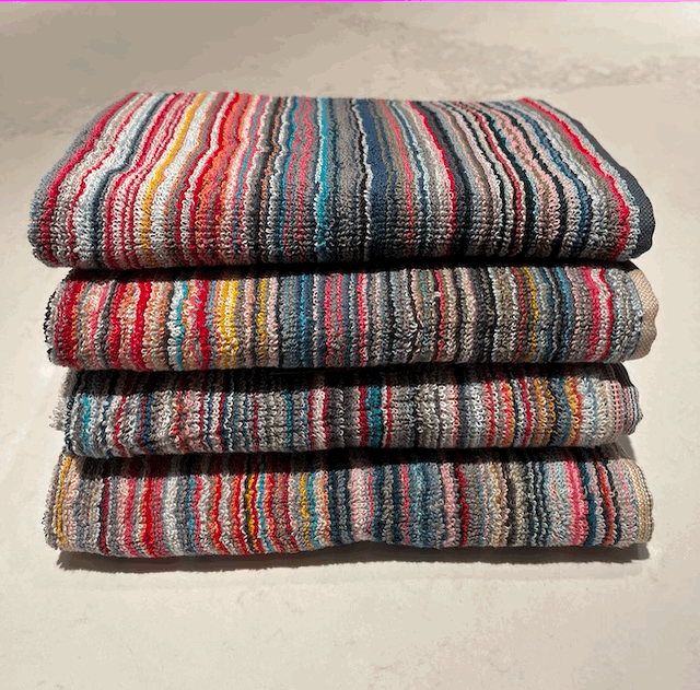 Please note that as these towels are crafted using recycled fabrics, each towel is unique and colours may vary slightly from image shown.