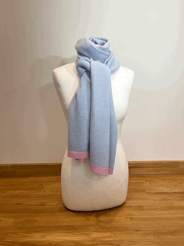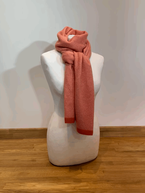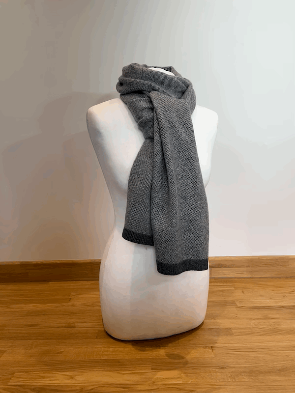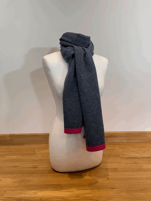 Our beautiful new jacquard knit scarves are made in 100% pure cashmere to our own design. Each scarf consists of two colours knitted into a jacquard pattern with either a self colour ribbing or a contrast colour ribbing. Generously sized, to suit all ages, stages and genders, they will keep you warm and cosy through the coldest of winters.