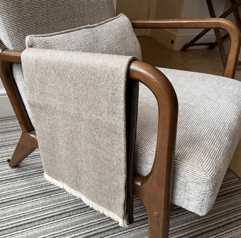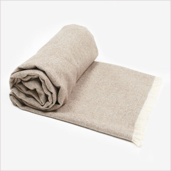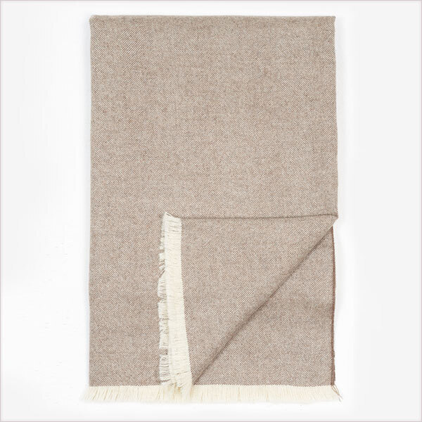Our Royal Alpaca herringbone throws are truly luxurious and far superior to all other natural yarns in softness, warmth and elegance. Refined in its drape and lustre, these signature herringbone throws come in a beautiful natural fawn colour with cream fringing.